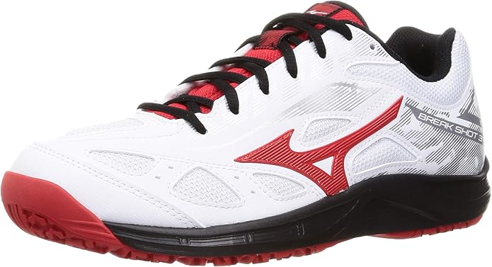 ミズノ テニスシューズ ブレイクショット 4 AC オールコート エントリーモデル 日本人の足型に合わせた3E幅広設計。外反母趾にも優しくフィットし、高クッションインソールで膝の衝撃を緩和。